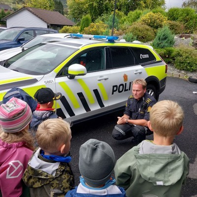 Denne måneden har et av temaene vært nødetater. Super spennende for alle ungene i barnehagen å få besøk av ekte politi og brannbil.